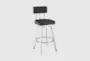Enhance your dining room or kitchen with the Opolo 30" Swivel Barstool in brushed stainless steel and black faux leather. This modern, armless barstool is designed for both style and comfort, featuring a sleek square silhouette. The swivel function adds convenience, making it a versatile addition to your space.