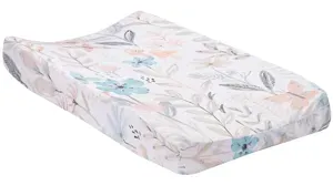 The Baby Blooms Changing Pad Cover is perfect for keeping your little one warm and cozy during diaper changes. It is on a light cream ground with blooming flowers, delicate butterflies, mushrooms, and leaves. There are buttonholes for the changing straps, so your little one is safe and secure while having their diaper changed. Elastic on the short sides provides for a better fit. It is machine washable for easy care.