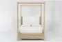 Transform your bedroom into a tranquil retreat with the Voyage Natural King Wood & Upholstered Canopy Bed by Nate Berkus + Jeremiah Brent. This stunning canopy bed, crafted from solid hardwood and knotty white oak veneer, offers a natural and inviting feel. The sun-drenched oak finish and upholstered headboard add a soft, bohemian touch to your sleeping space.