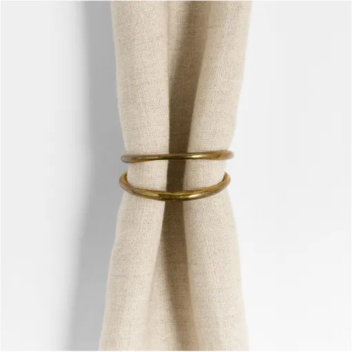 A simple, organic shape entwines gold bands with a soft, lustrous finish to form a beautiful napkin ring for elegant table settings and special occasions. Made of stainless steel with a gold finish, the two-ring design looks elegant with formal dinnerware and adds sparkle to casual linen and cotton napkins for everyday meals. We love the hint of glimmer with all-white or monochromatic place settings. Napkin rings can secure napkins in a range of folded designs, from the simple roll to the fan fold or double candle fan fold.