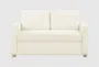 The Tyler Ivory White Boucle Fabric 66" Convertible Futon Sleeper Loveseat is the perfect addition to any living room. Its casual style and soft ivory color blend seamlessly with a variety of decor themes. The durable boucle fabric, made from 100% polyester, ensures both comfort and longevity.