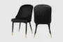 The Relle Black Velvet Upholstered Dining Chair Set Of 2 brings a touch of modern elegance to your dining space. These chairs feature a luxurious black velvet fabric that is both soft and durable. The contemporary design is enhanced by a curved channel tufted back and upholstered legs with gold tips, making them a stylish addition to any home.