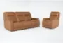 Experience ultimate comfort and relaxation with the Thornton Top Grain Leather 2 Piece Zero Gravity Reclining Sofa & Recliner Set. This casual style set, finished in a warm saddle color, is designed to enhance your living room. Enjoy the luxury of top grain leather combined with the durability of polyurethane for a perfect blend of style and convenience.
