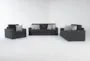 Monterey Twilight Blue Grey Fabric 95" 3 Piece Sofa Loveseat & Oversized Armchair Set | Loose Reversible Back