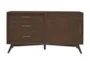 This Mid Century Modern 50" Walnut 1 Door 3 Drawer TV Stand is a fantastic addition to your living room. Crafted from mahogany solids and veneer, this small, rectangular TV stand offers both style and functionality. The natural walnut finish complements any modern decor while providing ample storage space for your media and accessories.