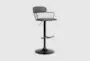 The Modal Adjustable Black Wood Barstool in grey faux leather is a stylish addition to any dining room or kitchen. Designed with modern aesthetics, this barstool features an adjustable height mechanism, making it versatile for various counter heights. The combination of faux leather and black metal ensures both durability and comfort.