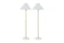The 30" Matte White & Brass Stick Buffet Table Lamp with Metal Shade Set of 2 is a perfect addition to any bedroom. These lamps feature a modern design with a sleek matte white and brass finish, adding a touch of sophistication to your space. The metal shade provides a soft, diffused light, creating a warm and inviting atmosphere.