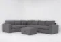 Upgrade your living space with the Isabella II Charcoal 139" 4 Piece Sectional & Ottoman. This modern sectional, upholstered in a versatile grey fabric, seamlessly complements any decor. With its reversible orientation and detachable cushions, it offers both comfort and functionality.