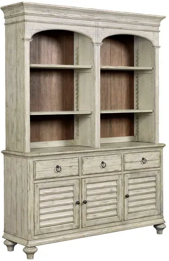 Together, the Hastings Buffet and Open Hutch are the statement piece in this solid wood dining room. The Hastings not only shares its style with farmhouse dining rooms of the past, it also utilizes the nearly forgotten sawtooth feature to adjust the shelves.