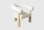 Introducing the Spara Cream White Performance Textured Boucle Fabric Curved Accent Chair, a modern addition to your living room. This chair features a stunning curved design and is upholstered in a soft cream fabric, ensuring both comfort and style. It is supported by sturdy ash wood legs, making it a durable and stylish choice for any contemporary space.