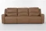 Liam Saddle Brown Beige Leather 105" 3 Piece Flexsteel Power Zero Gravity Triple Reclining Modular Sofa | Adjustable Headrests | Furnzy.com - Shop local furniture stores in one place