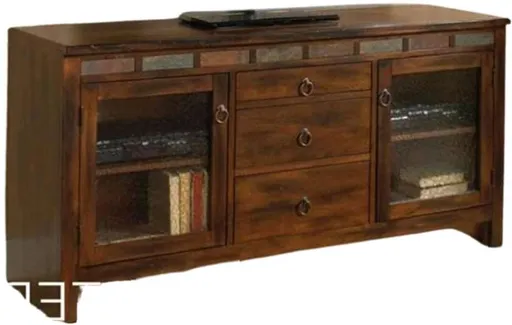 The Sunny Designs Santa Fe dark chocolate 60” tv console with game drawer provides ample space for your television and media accessories. Its built-in game drawer offers extra storage, while the sturdy construction ensures lasting use in any entertainment setup.