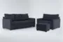 Transform your living room with the Aramis Midnight Navy Blue Fabric Sofa, Twin Memory Foam Arm Chair Sleeper, and Storage Ottoman Set. This modern set offers both style and functionality, perfect for any home. The deep navy blue fabric adds a touch of sophistication, while the memory foam sleeper provides comfort for guests.