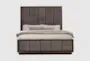 Transform your bedroom into a modern sanctuary with the Malakai Black California King Upholstered & Wood Panel Bed. The smoked peppercorn and grey colors complement any decor, while the quilted panel design adds a touch of sophistication. Its sturdy construction ensures a restful night's sleep.