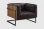 The Magali Ebony Top Grain Leather Accent Chair brings casual comfort to your living room. Its tufted design and tight back provide excellent support, while the track arms add a modern touch. Upholstered in 100% top grain leather, this armchair offers durability and style.