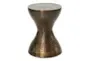 Bring a finishing touch to your home with an inviting appeal with this beautifully crafted accent table. A compact friendly table providing you with additional surface storage space any where in your home. Add this small accent table to the side of your upholstered linen sofa with some bold colored pillows for a whimsical look. This item ships in 1 carton. Suitable for indoor use only. This item ships fully assembled in one piece. Maximum weight limit is 100 lbs. Made in India. This is a single bronze colored end table. Industrial style.
