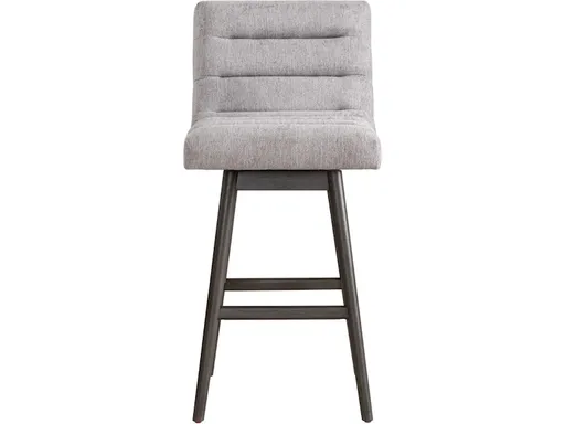 The Bridge Swivel Counter Stool offers the perfect blend of style, comfort, and practicality, making it an ideal choice for your kitchen island, counter, or home bar. Designed with a sleek low-back silhouette and channel-tufted upholstery, this modern counter stool exudes sophistication while providing the support and comfort you need for everyday use. Upholstered in durable polyester fabric, the seat and backrest feature fiber-wrapped foam cushioning for a plush feel that lasts. Whether you are hosting guests or enjoying casual meals, the 360-degree swivel function ensures smooth mobility and convenience. Its sturdy frame, crafted from premium rubberwood, features a brushed finish that highlights the natural texture of the wood, making it as durable as it is visually appealing. The base includes protective plastic glides to prevent floor scratches and scuffs, making this stool practical and easy to maintain.