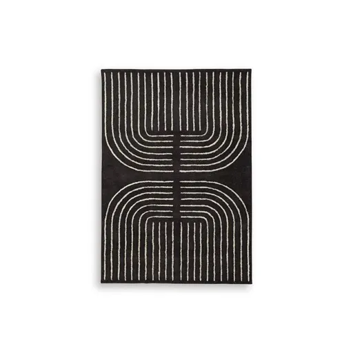 Rocking a stylish geometric design, this elegant area rug knows how to make a statement. Its black and ivory pattern offers a welcome complement underfoot that doesn’t overtake your room’s design. You’ll love how the rug adds a contemporary touch under a couch or bed.