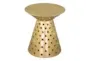 The Tron Gold Metal Pedestal Side Table is a stunning addition to any living room. Its modern design and perforated details make it a unique accent piece that will enhance your space. Crafted from durable iron, this round side table is both stylish and functional.