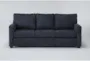 Experience the comfort and style of the Aramis Midnight Blue Fabric 83" Sofa. Designed with modern aesthetics in mind, this sofa features track arms and tapered legs for a contemporary appeal. The deep navy color adds a rich, inviting touch to your living room.