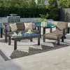 Chelsea Textured Black Aluminum and Weathered Teak Outdoor Wicker Concealed Cushions 3 Piece Swivel Sofa Group 46 x 26 in Coffee Table | Furnzy.com - Shop local furniture stores in one place