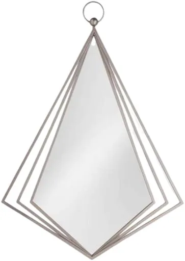 The Chanda Wall mirror features dramatic art deco styling with a geometric metal frame finished in silver, and a pendant ring top. With this Silver finished design it gives your room an eye catching piece and can be use in any room of the house.