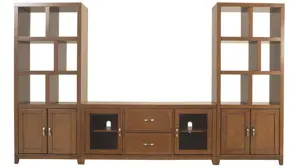 Divide and conquer with the Granthom 3-pc. wall unit crafted of solid poplar with birch veneers. The 60" TV console and pair of open towers enable you to customize your entertainment space. Wood-framed glass doors and see-through compartments add to the visual transparency of this flexible wall unit.