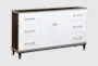 The Bristol White Brown Wood 38" 6 Drawer Dresser combines classic design with practical functionality. Crafted with cherry veneer and solid poplar, this dresser offers ample storage with its six spacious drawers. Perfect for any bedroom, its white and brown finish adds a touch of sophistication to your space.