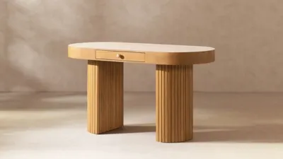 The Jesse Home Office Collection by Jennifer Taylor Home is a harmonious blend of functionality and modern elegance. The desk's unique pill-shaped, oval top adds a contemporary flair to your workspace while the thick pillar legs accented with fluted ribbing provide stability and a modern aesthetic. Crafted with natural rubber wood and rubber wood veneer, this desk exudes a timeless charm, seamlessly integrating nature's beauty into your home office. The single drawer offers convenient storage, keeping your workspace organized and clutter-free. Elevate your work environment with a desk that not only fulfills your practical needs but also adds a distinctive touch of sophistication with its natural burl wood finish. Transform your home office into a space that inspires productivity and showcases your unique sense of style.