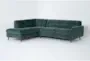 Introducing the Allie Midnight Jade Green Blue Fabric 108" 2 Piece L-Shaped Sectional with Left Arm Facing Corner Chaise. This modern sectional sofa, designed with tufted details and track arms, is a stylish addition to any living room. Upholstered in midnight jade fabric, it offers firm comfort and features tapered legs for a contemporary touch.