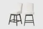 The Strine White Upholstered Wood Swivel Counter Height Stool with dark brown legs is a modern addition to any dining room or kitchen. These armless stools offer a comfortable and stylish seating option that complements your space. The swivel design adds functionality and convenience to your daily routines.