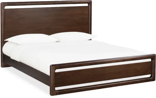 Add modern warmth and refined beauty to your bedroom with the Sol collection. Beautifully crafted from acacia solids and veneers, this full-size platform bed offers curved framing and is finished in a spiced brown color that accentuates the wood's grain. Its chic, low-profile design will add sophisticated appeal to your bedroom space! Includes headboard, footboard, rails, slats, and support decking for a mattress.