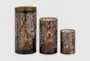 Delight your guests and make any occasion extra special by adding a lighted or flameless candle to this lantern. Made with a sturdy base, it is perfect for creating an elegant atmosphere at your table top or mantel. Add instant warmth and inviting ambiance to your home with these brown metal candle holders that are great addition to eclectic interior. Designed with felt or rubber stoppers at the base that prevent scratching furniture and table tops, as well as sliding around. Can hold 3 pillar candles, not included. This item ships in 1 carton. Please note that this item is for decorative use only. Suitable for indoor use only. This item ships fully assembled in one piece. Made in India. This bronze colored lantern candle holder comes as a set of 3. Eclectic style.