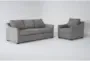 Add a touch of modern style to your living room with the Porthos Vintage Grey Fabric 2 Piece Queen Memory Foam Sleeper Sofa Bed & Arm Chair Set. This versatile set includes a sofa and a chair, both upholstered in 100% polyester fabric that offers comfort and durability. The loose, reversible back cushions provide added convenience and easy maintenance.