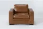 Experience the ultimate in comfort and style with the Mason Brown Leather Oversized Arm Chair. This modern armchair, upholstered in 100% leather, features a deep-seated design perfect for lounging. The Derrick Camel color adds a touch of warmth to any living room or bedroom.