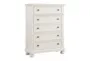 The Lorelie White 5-Drawer Chest combines casual and traditional styles, making it a versatile addition to any bedroom. Crafted from wood and engineered wood, this chest of drawers features a pristine white finish that adds a touch of elegance to your space. The five dovetail drawers with ball bearing glides ensure smooth operation, while the antique dark bronze tone knobs provide a classic accent.