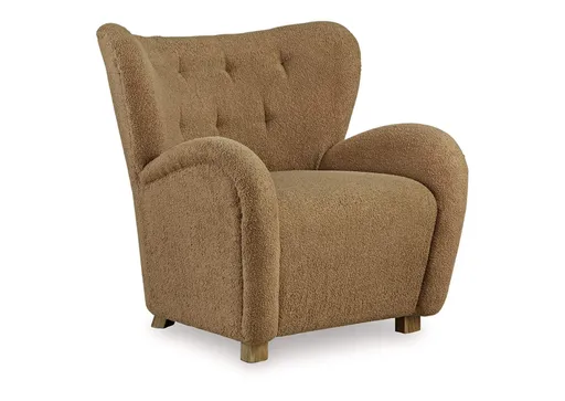 High style meets relaxation in the Larbell accent chair. Cozy faux shearling fabric keeps the look contemporary without compromising on comfort. A tufted wingback design and dramatic slope arms add high-fashion flair. It's the perfect place to curl up and enjoy your favorite book or podcast.