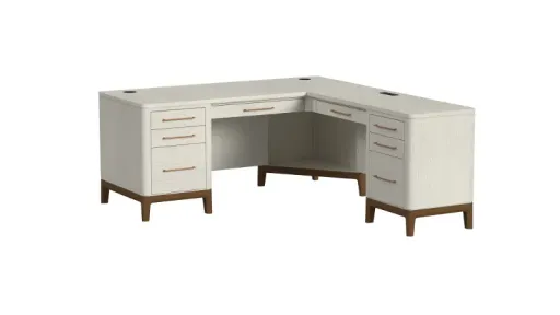 Bring timeless style and smart functionality to your workspace with the Pomona L-shaped desk. Crafted with a solid rubberwood base for lasting durability, this desk features a crisp white finish that’s scratch and water-resistant, so it stays looking great for years to come. With three storage drawers, a locking letter/legal file drawer, and two convenient grommets for cable management, it’s designed to keep you organized and connected. Finished on all sides for versatile placement, this elegant piece combines beauty and practicality.