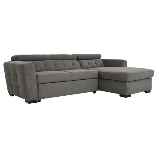 You won't have to dread surprise family visits with the Reeve III Gray Sleeper w/ Right Chaise. Soft pewter gray polyester fabric and tufted accents make it a great fit for contemporary houses. Adjustable headrests ensure you'll find the best position to enjoy a movie night with family or friends, and the chaise's hidden storage means cleanup is quick and easy. The couch extends into a sleeper so you can have guests over without fussing about having an extra bed.