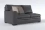 The Greer Dark Grey Leather Left Arm Facing Loveseat combines casual comfort with contemporary style, making it a perfect addition to any living space. Crafted from 100% leather, this loveseat offers a soft and luxurious seating experience. Its modular design allows for versatile configuration, ensuring it fits seamlessly into your home.