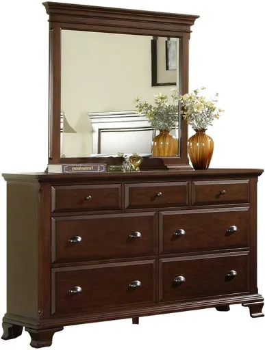 Bring timeless elegance to your bedroom with the Canton Cherry Dresser and Mirror. Featuring a rich cherry finish, classic moldings, and ample storage drawers, this set blends beauty with functionality. The matching framed mirror adds depth and charm, creating a warm, sophisticated centerpiece for your space.