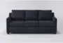 Porthos Midnight Blue Fabric 80" Sofa adds rich color and classic comfort to your living space. Its traditional silhouette features plush reversible cushions in a rich midnight blue upholstered material, perfect for those shopping for quality sofas and couches.