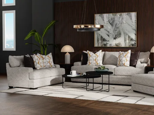 Indulge in the luxurious comfort and refined style of the Dove Sofa and Loveseat seta pinnacle of high-quality craftsmanship made in the USA. These gray upholstered pieces are meticulously crafted to enhance your living space with enduring quality and sophisticated aesthetics.The Dove Sofa and Loveseat boast fully reversible cushions featuring Franklin's Forever Foam, ensuring not only long-lasting durability but also plush comfort for an immersive lounging experience. The thoughtfully included throw pillows enhance the overall aesthetic, providing an extra layer of charm and coziness to your seating area.Elevate your home with this exquisite set that seamlessly combines quality, comfort, and timeless design. Experience the epitome of relaxation and style as the Dove Sofa and Loveseat become focal points in your living room, creating an inviting and sophisticated atmosphere for you and your guests.