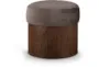 The Nimes Brown Velour Fur Fabric Ottoman/Stool is a stylish and functional addition to any living space. Its round shape and soft brown velour fur fabric provide both comfort and elegance. The rich brown walnut finish and oak veneer add a touch of sophistication to its art deco design.