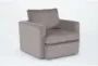 The Basil Grey Brown Fabric Arm Chair is a perfect addition to any living room, offering both comfort and style. Its modern design and bear hug grey color make it a versatile piece that can complement various decor themes. The chair's square orientation and track arms provide a sleek and contemporary look.