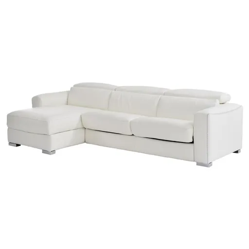 The Bay Harbor White Leather Sleeper w/Left Chaise is perfect for your living room, and it’s great for when guests sleep over. Smooth porcelain white genuine leather everywhere the body touches and adjustable headrests ensure this leather sleeper has comfortable, deep seating for everyone. When you need to convert this sofa to a bed, the left side opens up to reveal a full size mattress. There’s hidden storage for pillows, blankets, and more.
