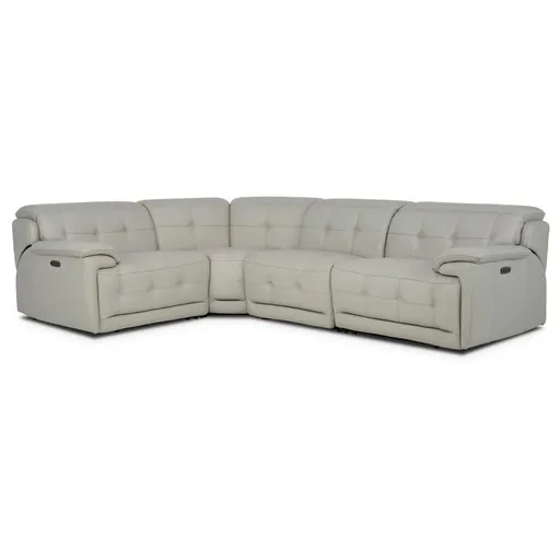 If you're looking for a couch that's the perfect fit for your space, you'll love the Graystone Leather Power Reclining Sectional with 4PCS/2PWR. Made with 100 percent top grain leather where the body touches, this classy, sophisticated couch boasts a gorgeous gray color, contrast stitching and welt trim. Plus, with deep, wide seating and power motion, it's as comfortable as it is modern.