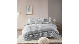 Give your bedroom a soft casual update with the Calum Cotton Duvet Cover Set. The cotton clipped jacquard duvet cover features yarn-dyed stripes of tonal grey and off-white, for a soft and alluring look. Matching shams (1 for Twin/) mirror the design seen on top of the bed, while two decorative pillows with hypoallergenic polyester filling add the finishing touches. This bedding set is also OEKO-TEX certified, meaning it does not contain any harmful substances or chemicals to ensure quality comfort and wellness. Button closures on the duvet cover secure a padded insert (NOT included) within the duvet cover and internal corner ties prevent it from shifting.