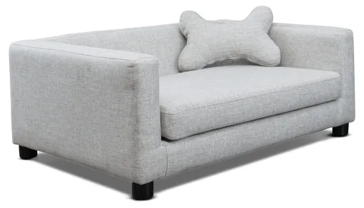 We believe all dogs deserve a special spot in your living space, and our Slip Cover Dog Sofa is a perfect choice. Crafted with your furry friend in mind, our dog sofa is soft enough that your pup can get cozy but not so plush that they have difficulty getting up and down. The slipcover is easily removable and washable, making cleaning up a breeze. Say goodbye to the worries of dirty paws - simply remove the cover, bring it to your local dry cleaner, and enjoy a fresh, clean look! Designer bone pillow included at no additional charge. Available in Ash, Pearl, and Midnight.