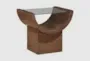 The Camille Modern Curve Brown 20" Glass Top End Table is a stunning addition to any living space. Its modern design and rich dark brown finish make it a versatile piece that complements a variety of decor styles. The combination of tempered glass and natural oak veneer adds a touch of elegance and durability. This design also serves as the perfect bedside table.